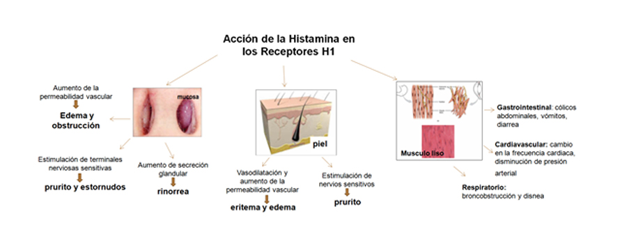 En el caso de las rinitis alérgicas, durante la fase temprana de la inflamación se produce una liberación inmediata de productos de mastocitos los cuales generan una red inflamatoria específica que favorece la expresión y activación de moléculas de adhesión (CAM). La activación de CAM favorece la migración de células proinflamatorias tales como eosinófilos y neutrófilos en la mucosa nasal. Estas moléculas han sido objeto de investigación y se han encontrado que los antihistamínicos H1 de nueva generación también tienen un efecto antiinflamatorio, disminuyendo el número de células inflamatorias reclutadas en el tejido y la expresión de ICAM entre otras10.